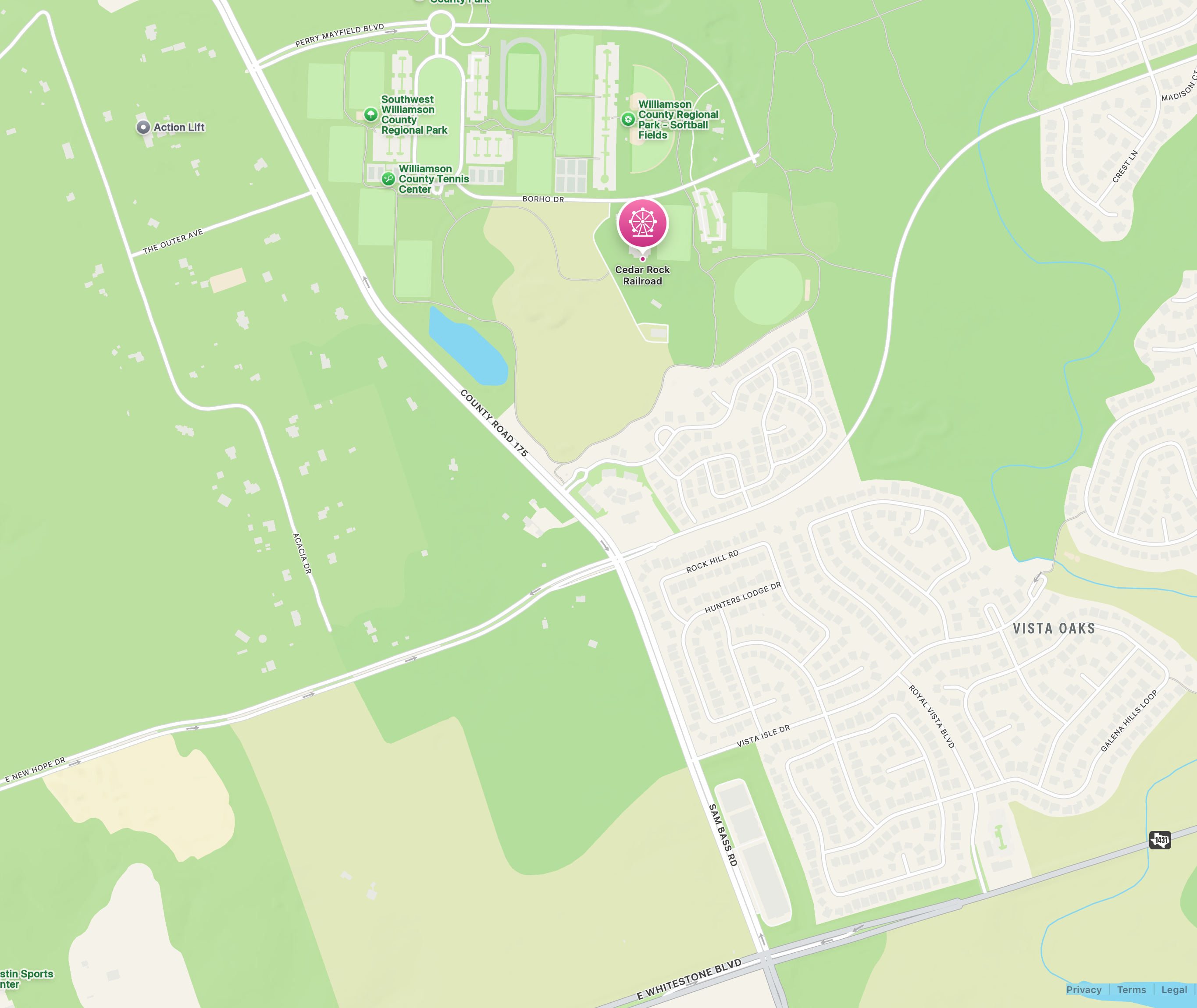 We are located inside the Williamson County Regional Park on County Road 175, just north of FM1431 (Whitestone Blvd).